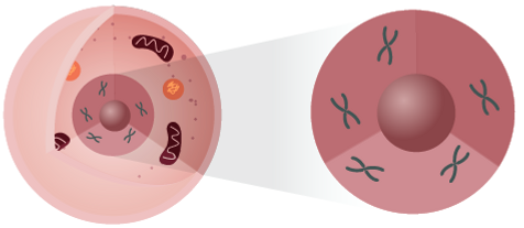 The genetic information lies within the cell nucleus of each living cell in the body. The information can be considered to be retained in a book for example. Part of this book with the genetic information comes from the father while the other part comes from the mother.